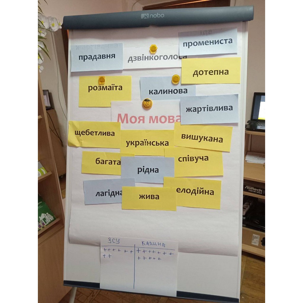 Під час проведення заходу школярів поділилили на дві команди: «ЗСУ» та «Калина». Вікторина складалася з 4 турів: «Шиболет — мовний пароль», «Мовний детектор», «Якого ти роду» та «Шифрограма». Діти старанно відповідали на всі запитання, щоб перемогти, підбирали слова, які характеризують нашу мову та її багатогранність: солов’їна, милозвучна, розмаїта, співуча тощо.