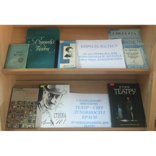 На виставці «Театр – світ духовності та краси» розміщені книжкові видання: Оскар Г. Брокетт, Франклін Г. Гілді. Історія театру, де відображено сучасний стан знань, надана найточніша оцінка історії театру; Український театр XX століття. Антологія вистав, де розповідається про визначні вистави театрів України 20 – початку 21 ст.; Батько-Ступка, Ірина. Актор № 1, де висвітлюється філософське світобачення митця тощо.
