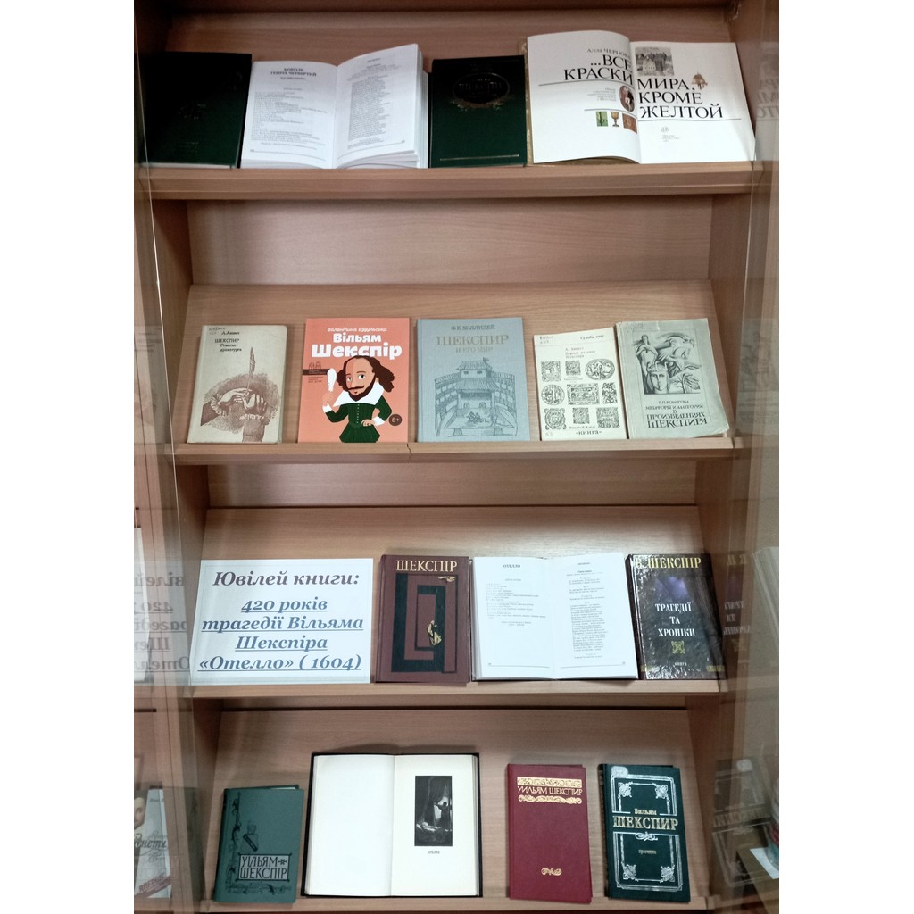 На цій виставці ви матимете змогу поглибити своє знайомство з твором Вільяма Шекспіра, розглянути різноманітні аспекти та тлумачення трагедії «Отелло». Виставка пропонує широкий вибір книг, критичних статей та досліджень, які розкажуть про структуру та сюжет твору, його історичний контекст та вплив на сучасну культуру.