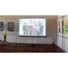 Головний бібліотекар відділу краєзнавства Володимир Білобровець познайомив присутніх з короткою біографією майстрині та подав короткий огляд її творчості. Олена Миколаївна поділилася з присутніми цікавими фактами зі свого життя, а також розповіла про свій творчий шлях, про історію написання художніх плакатів, представлених на виставці, читала свої вірші, які вперше надруковані  у 2023 році в літературних альманахах «Оксамитова пора» та «Затишок» і були подаровані для нашої бібліотеки. В перервах між розповідями звучали пісні у виконання дітей Новогуйвинської гімназії. Захід організували працівники відділу краєзнавства ЖОУНБ імені О. Ольжича.