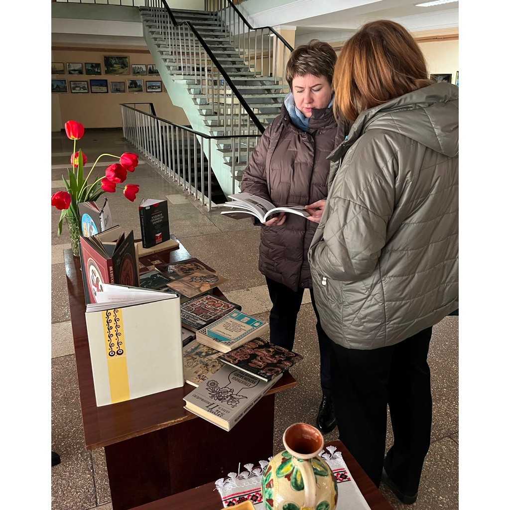 На книжковій виставці представлено 20 нових українських книг про кераміку, українське гончарство та ліплення з глини. Переглянувши книги всі охочі мали змогу дізнатись про стародавні витоки мистецтва української народної кераміки, художні промисли України та історію гончарства в Україні. Гості з задоволенням та цікавістю переглянули книжкову виставку підготовлену працівниками відділу мистецтв.