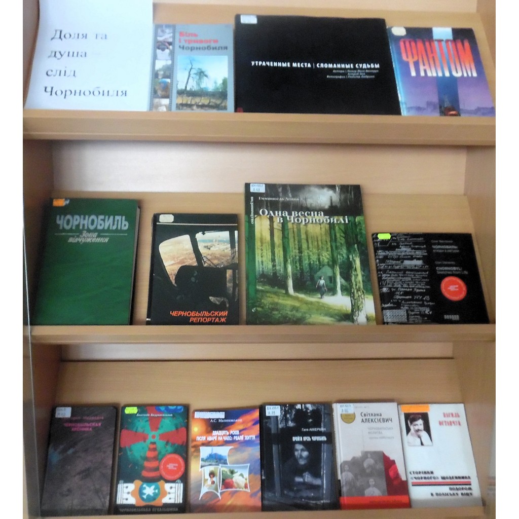 До роковин Чорнобильської катастрофи у холі бібліотеки презентовано книжкову виставку «Чорнобиль. Без права на забуття», щоб ще раз пригадати ті страшні події в країні.