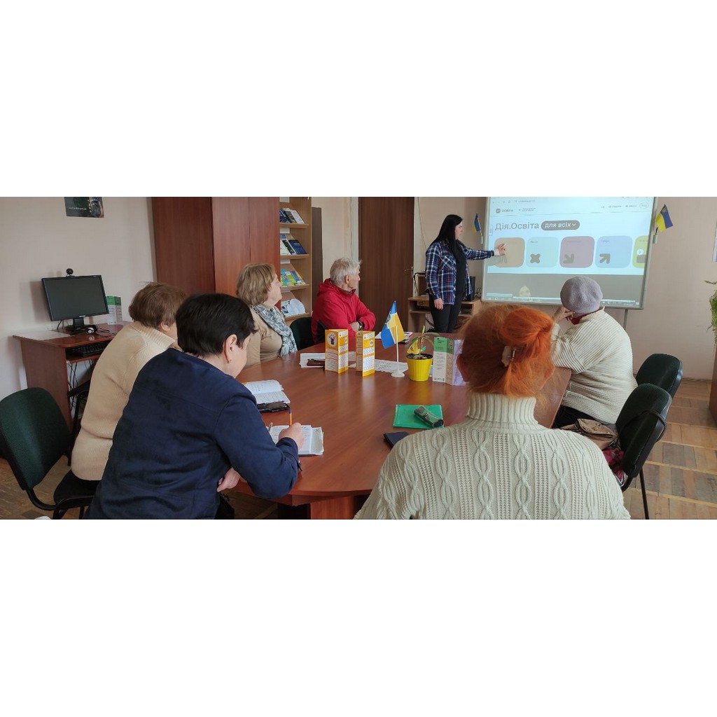 «Дія. Цифрова освіта» https://osvita.diia.gov.ua/ - це національна онлайн-платформа для розвитку цифрової грамотності громадян. Під час заняття учасники дізнались, як зареєструватися на платформі, як шукати та переглядати безкоштовні освітні серіали з проходженням тестування для закріплення матеріалу та як отримати сертифікат. За допомогою платформи «Дія. Цифрова освіта» вчитись просто та зручно в цьому переконались і наші учасники.