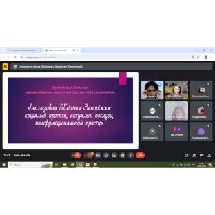 30 травня 2024 року завідувачка відділу «Інклюзивний читальний зал» ЖОУНБ ім. О. Ольжича взяла участі в обласному онлайн-марафоні «Бібліотека без обмежень», який організувала Запорізька ОУНБ для завідувачів бібліотек територіальних громад області.