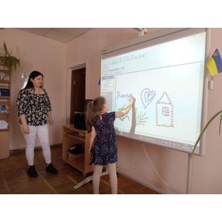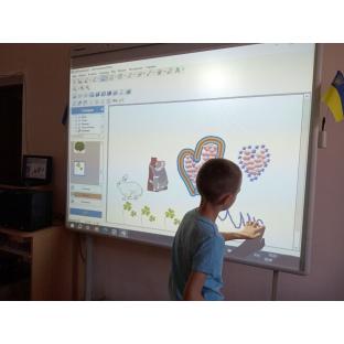 Також працювали з інтерактивною дошкою, на якій створювали віртуальні листівки.