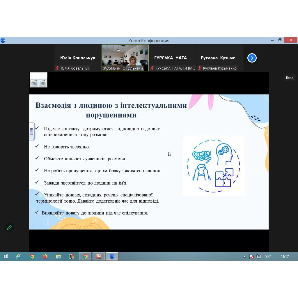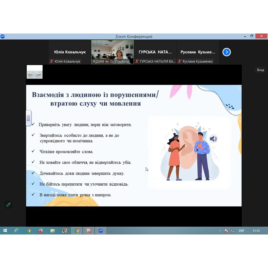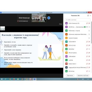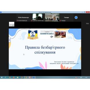 Під час зустрічі учасники розглянули 6 простих правил для спілкування без бар'єрів. Поговорили про етику взаємодії з людиною, яка користується кріслом колісним, взаємодію з людиною із порушеннями/втратою слуху чи мовлення, з людиною із порушеннями/втратою зору, про взаємодію з людиною з інтелектуальними порушеннями та взаємодію з людиною із психічними порушеннями.
