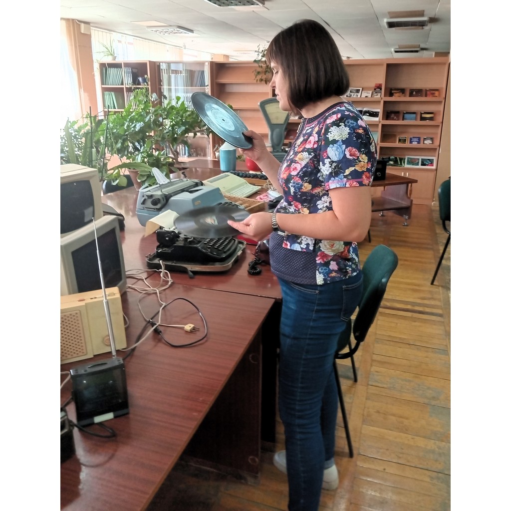 У відділі виробничої літератури «помандрували у віках»: переглянули виставку ретро-техніки та зазирнули до «Поліської хати».