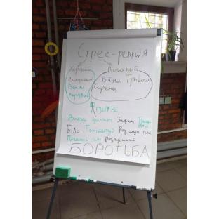 Під час тренінгу учасники дізнались про «хороший» та «поганий» стрес, його різницю та вплив на життя та організм людини. Поділилися своїми думками, як вони розуміють слово «стрес» та які ситуації в них викликають стрес. Також обговорили методи та «особисті рецепти» його подолання.