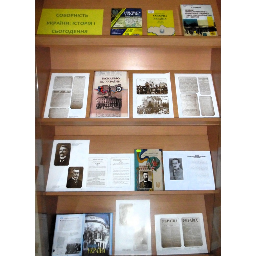 Враховуючи велике політичне та історичне значення для утворення єдиної (соборної) української держави та з нагоди 106-ї річниці проголошення Акту Злуки працівники відділу україніки, в холі бібліотеки, організували розгорнуту книжкову виставку «Соборність України: нерозривний зв’язок поколінь». На виставці представлено літературу про діяльність Центральної Ради, проголошення Акту Злуки та історичного значення події об'єднання українських земель в єдину Соборну Україну.