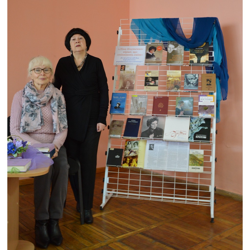До уваги присутніх була представлена книжкова виставка, яка знайомила з найвідомішими поетичними та прозовими творами авторки, зокрема зі знаковими збірками «Над берегами вічної ріки», «Неповторність», «Сад нетанучих скульптур», історичним романом у віршах «Маруся Чурай», а також її прозовою книгою «Записки українського самашедшого». Особливу увагу викликали видання з літературознавчими розвідками та статтями про творчість Ліни Костенко.