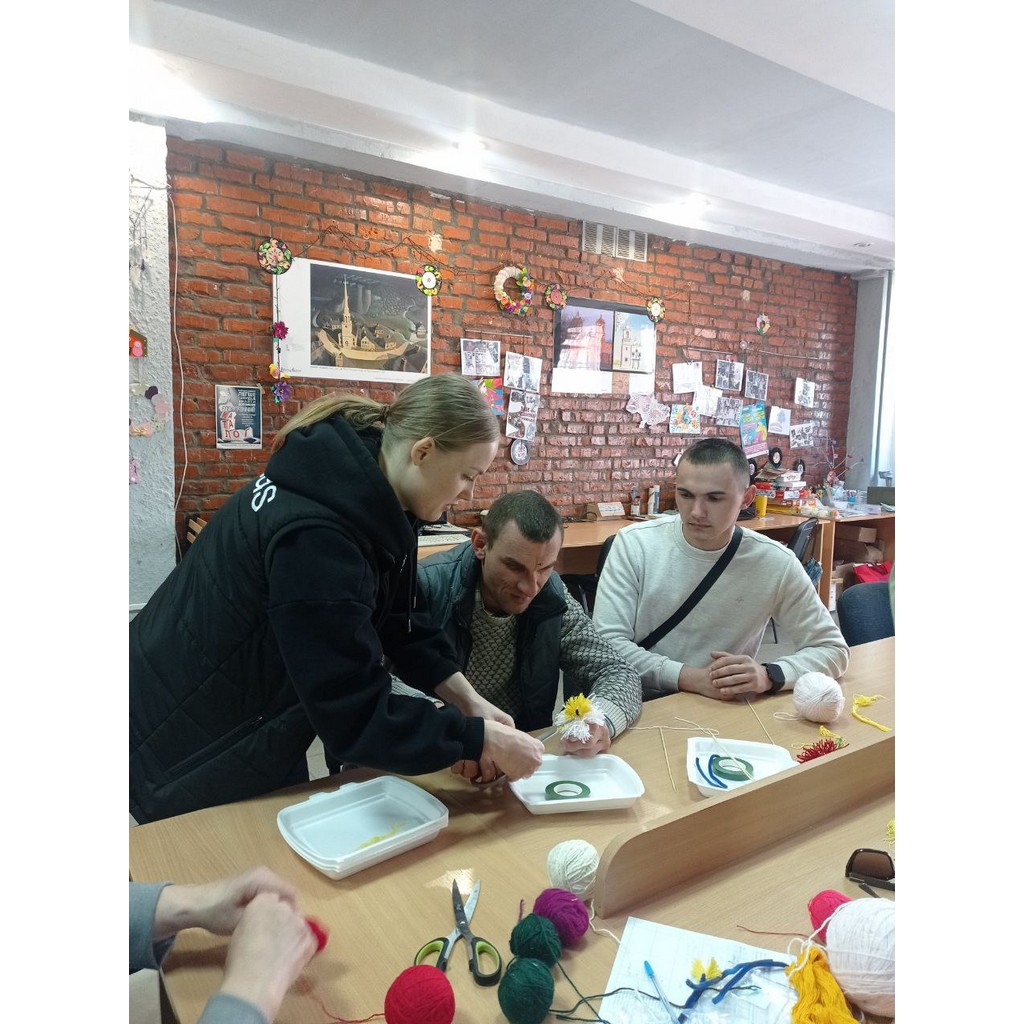Чергове тренінгове заняття для молоді з інвалідністю було присвячене українським традиціям та звичаям у післяпасхальні дні. Особливо захоплюючим для учасників став майстер-клас із виготовлення квітів з ниток.