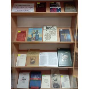 Чільне місце на виставці зайняли книжкові видання, які висвітлюють історичні аспекти внеску Кирила і Мефодія в історію освіти, культури слов'янських народів та розвитку писемності, ознайомлюють з дослідницькими працями українських мовознавців як минулого, так і сучасних лінгвістів.