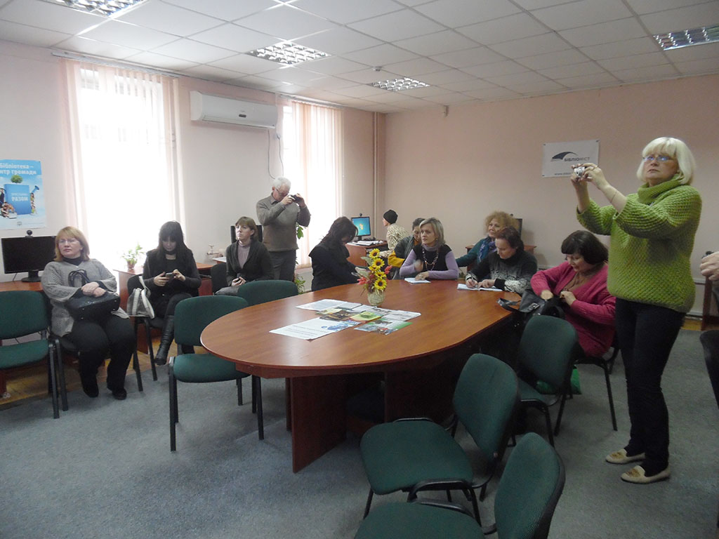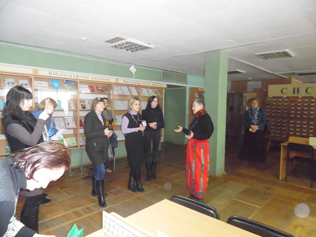 23 січня 2016 року Житомирську обласну універсальну бібліотеку ім. О. Ольжича з професійним візитом відвідали колеги з Вінницької області – працівники Вінницької ОУНБ ім. К. А.Тімірязєва, Вінницької обласної бібліотеки для дітей та Вінницької обласної бібліотеки для юнацтва. Програма візиту була досить насиченою та ввібрала в себе екскурсійні і професійні заходи. Працівники Житомирської ОУНБ провели екскурсію бібліотекою, розповіли про діяльність окремих відділів, відповіли на запитання вінницьких колег. Найбільш сильне враження на колег справило знайомство з роботою інклюзивного читального залу, яку представила Мельник Ю. І. Продовжила екскурсію завідувачка відділу нових бібліотечних технологій Прядченко С. В., яка віртуально провела колег інформаційними електронними ресурсами обласної бібліотеки. Одним з пріоритетних напрямків діяльності ЖОУНБ ім. О. Ольжича є проектна діяльність. Методист Люблянська О. В. представила колегам проект «Бібліотека як міст культурної інтеграції внутрішньо переміщених осіб у місцеві громади», який було втілено в бібліотеках області восени 2015 року у співпраці з Житомирською обласною молодіжною громадською організацією «Паритет».