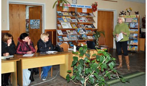 Головний методист науково-методичного відділу Козаченко Г. Г. провела дискусію-презентацію «Читання і нова парадигма розвитку бібліотек», під час якої обговорила з бібліотекарями району проблеми, що стосуються бібліотек всіх рівнів – від сільської до державної.