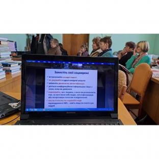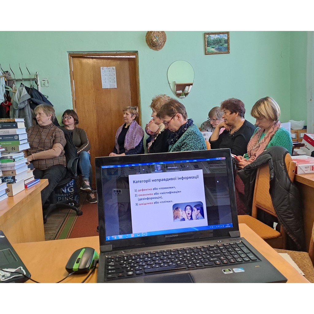 Для бібліотекарів пройшов онлайн - тренінг на тему «Як виграти в інформаційній війні», який провела головний бібліотекар Житомирської обласної універсальної наукової бібліотеки імені Олега Ольжича Галина Козаченко. Протягом відведеного часу учасники тренінгу отримали базові знання у сфері медіа, ознайомилися з розповсюдженими видами маніпуляції і пропаганди, отримали знання про ключові принципи та завдання медіаграмотності,.