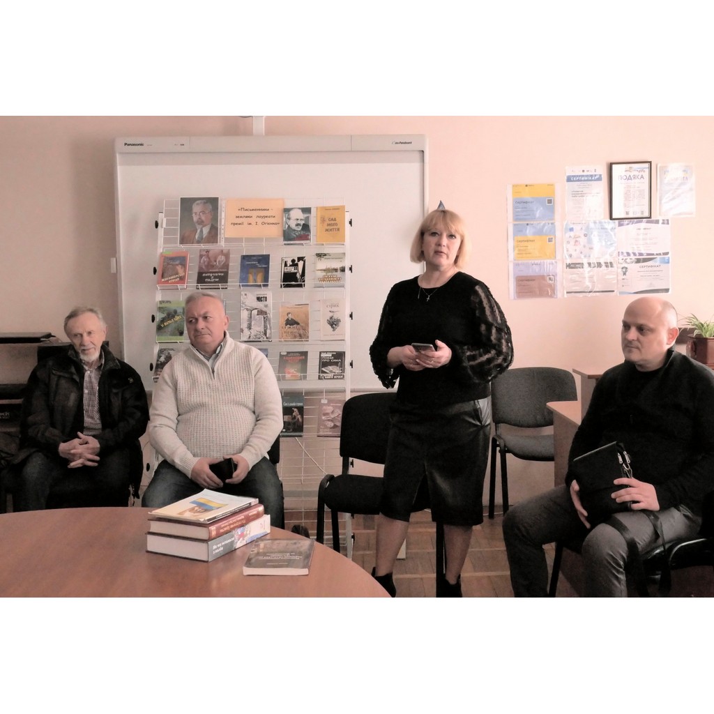 День краєзнавства «Наші земляки – лауреати премії ім. І.Огієнко» відбувся в тренінговому центрі Бібліоміст. Завідуюча відділом краєзнавства Лілія Ковальчук розповіла присутнім про заснування на Житомирщині літературно-мистецьких премій та представила запрошених гостей – лауреатів Огієнківської премії за різними галузями: «література» - Жайворон М.М. – поет, заслужений журналіст України; «наука» - Махорін Г.Л. – доцент, кандидат історичних наук, краєзнавець; «освіта» – Стельникович С.В. – доктор історичних наук, професор ЖДУ ім. І.Франка; «мистецтво» – Войтенко В. А. – заслужений художник України; Гузун М.С. – хореограф, народний артист України. Зустріч з преміантами відкрив Г.Л. Махорін, розповівши про письменників, журналістів, художників, діячів культури і мистецтва лауреатів премії ім. І.Огієнка за різні роки, які відійшли в засвіти. Кожен з запрошених гостей розповів за які твори отримав винагороду. М. Жайворон зачитав декілька своїх віршів. Геннадій Махорін та Михайло Жайворон подарували для нашої бібліотеки книги. На завершення заходу Лілією Ковальчук було проведено короткий огляд книг лауреатів премії ім. І.Огієнка.