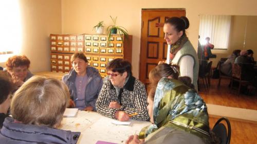 8 жовтня головний бібліотекар НМВ, координатор РТЦ Г. Козаченко та координатор сектору Інклюзивний читальний зал, тренерка РТЦ Ю. Покотило провели виїзний тренінг «Орієнтація на клієнта» для бібліотечних працівників Коростенського району. Це перший досвід проведення подібного заходу суто для працівників сільських бібліотек. Незважаючи на певні ризики та побоювання, які висловлювали тренерки, тренінг пройшов дуже вдало, при великій зацікавленості та активності його учасників. Фахівці обласної бібліотеки зрозуміли, що виключати цю тематику із тренерської діяльності ще зарано – нестандартний підхід як до звичної бібліотечної діяльності, так і до методики проведення, незмінно викликає позитивний настрій, проактивний підхід та виявляє приховані здібності учасників.