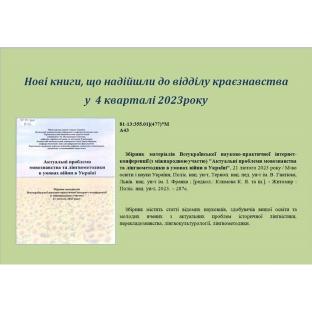 Нові книги, що надійшли до відділу краєзнавства у 4 кварталі 2023 року