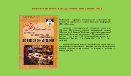 Нові книги, що надійшли до відділу краєзнавства у лютому 2017 р.