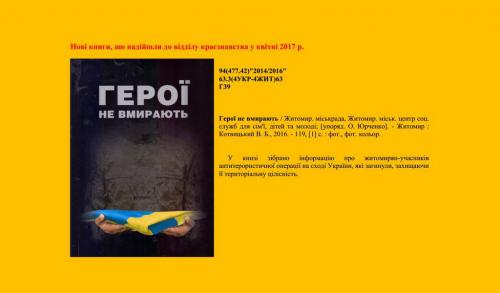 Нові книги, що надійшли до відділу краєзнавства у квітні 2017 р.