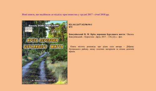 Нові книги, що надійшли до відділу краєзнавства у січні 2018 р.