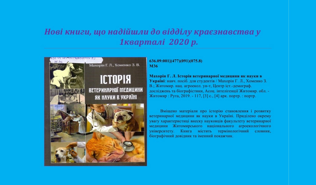 Нові книги, що надійшли до відділу краєзнавства у 1кварталі 2020 р.