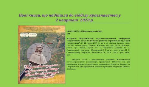 Нові книги, що надійшли до відділу краєзнавства у 2кварталі 2020 р.