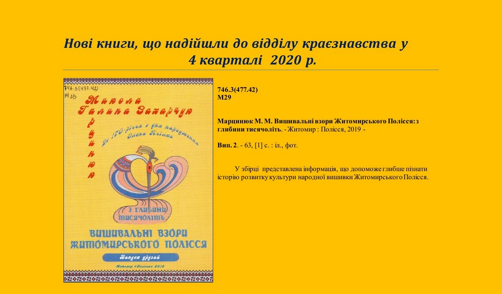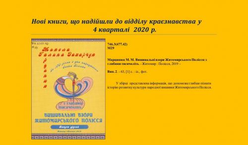 Нові книги, що надійшли до відділу краєзнавства у 4 кварталі 2020 р.