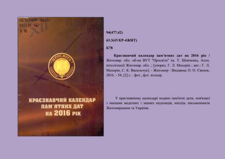 Календар знаменних і пам’ятних дат Житомирщини