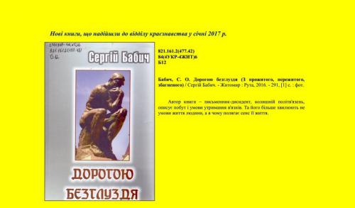 Нові книги, що надійшли до відділу краєзнавства у січні 2017 р.