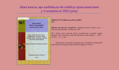Нові книги, що надійшли до відділу краєзнавства у 3 кварталі 2021 р.