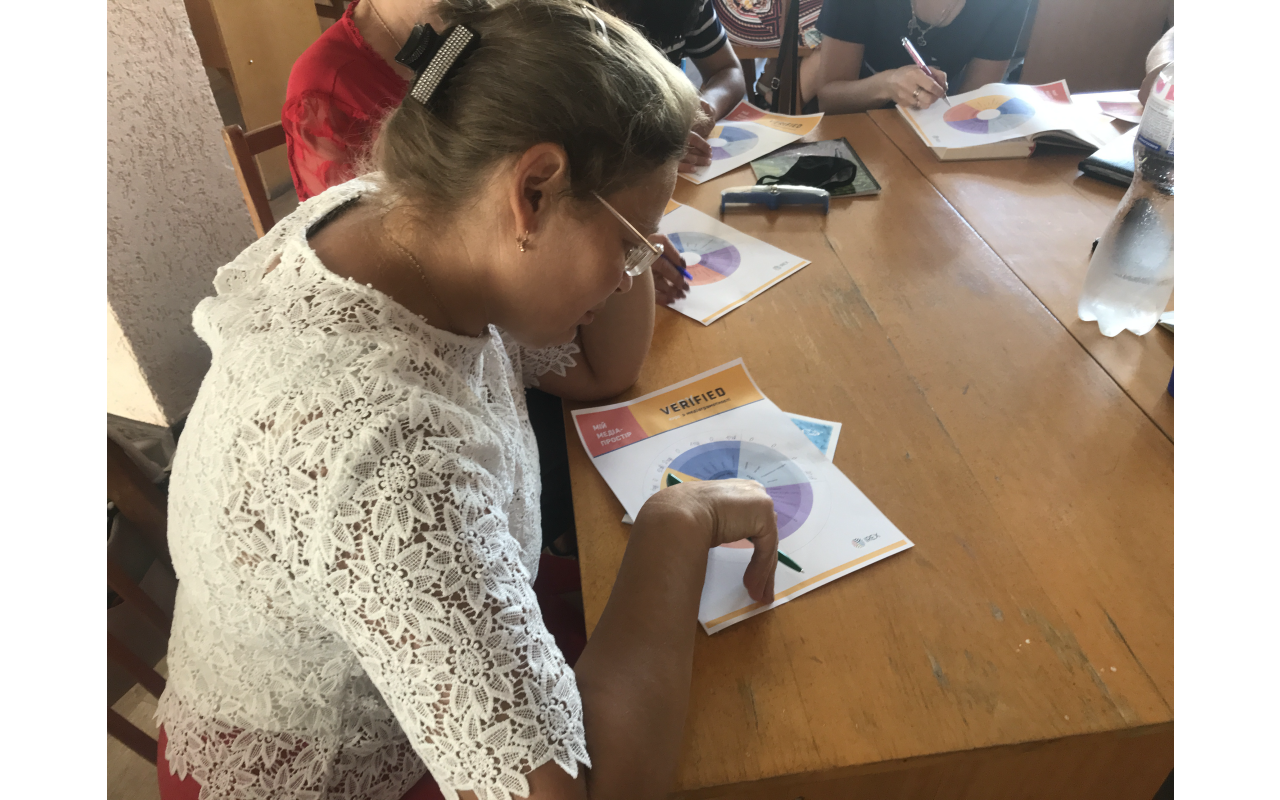 За допомогою тренерки (головного бібліотекаря НМВ ОУНБ ім. О.Ольжича Галини Козаченко) бібліотекарі дізналися про ключові принципи та завдання медіаграмотності, види та властивості інформації, навчилися розбиратися в таких поняттях, як інформування, пропаганда, реклама, «джинса» і «фейк», отримали інструменти (маркери) для вміння самостійно відрізняти новини від пропаганди, піару чи вигадки (фейку), дізнаючись про події з Інтернету, телебачення чи друкованої преси.