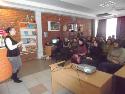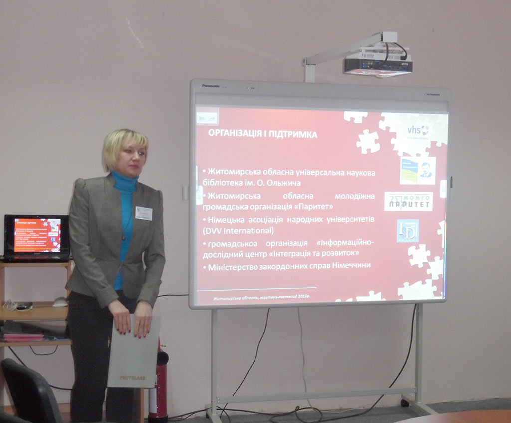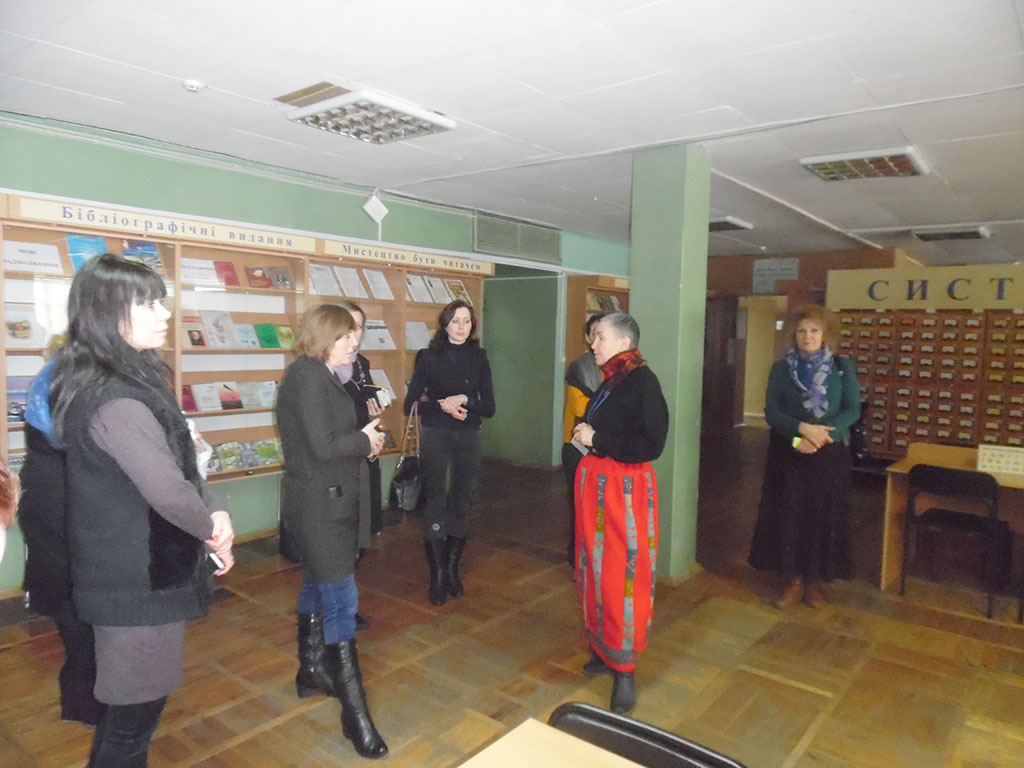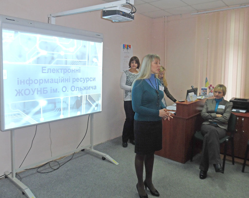 23 січня 2016 року Житомирську обласну універсальну бібліотеку ім. О. Ольжича з професійним візитом відвідали колеги з Вінницької області – працівники Вінницької ОУНБ ім. К. А.Тімірязєва, Вінницької обласної бібліотеки для дітей та Вінницької обласної бібліотеки для юнацтва. Програма візиту була досить насиченою та ввібрала в себе екскурсійні і професійні заходи. Працівники Житомирської ОУНБ провели екскурсію бібліотекою, розповіли про діяльність окремих відділів, відповіли на запитання вінницьких колег. Найбільш сильне враження на колег справило знайомство з роботою інклюзивного читального залу, яку представила Мельник Ю. І. Продовжила екскурсію завідувачка відділу нових бібліотечних технологій Прядченко С. В., яка віртуально провела колег інформаційними електронними ресурсами обласної бібліотеки. Одним з пріоритетних напрямків діяльності ЖОУНБ ім. О. Ольжича є проектна діяльність. Методист Люблянська О. В. представила колегам проект «Бібліотека як міст культурної інтеграції внутрішньо переміщених осіб у місцеві громади», який було втілено в бібліотеках області восени 2015 року у співпраці з Житомирською обласною молодіжною громадською організацією «Паритет».