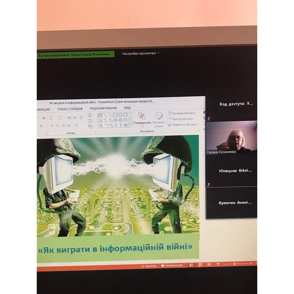 «Користування сервісом ECMaP”, анонс нового тренінгу «Як виграти в інформаційній війні» ( Галина Козаченко, гол. бібліотекар НМВ ЖОУНБ ім. О. Ольжича ) ;