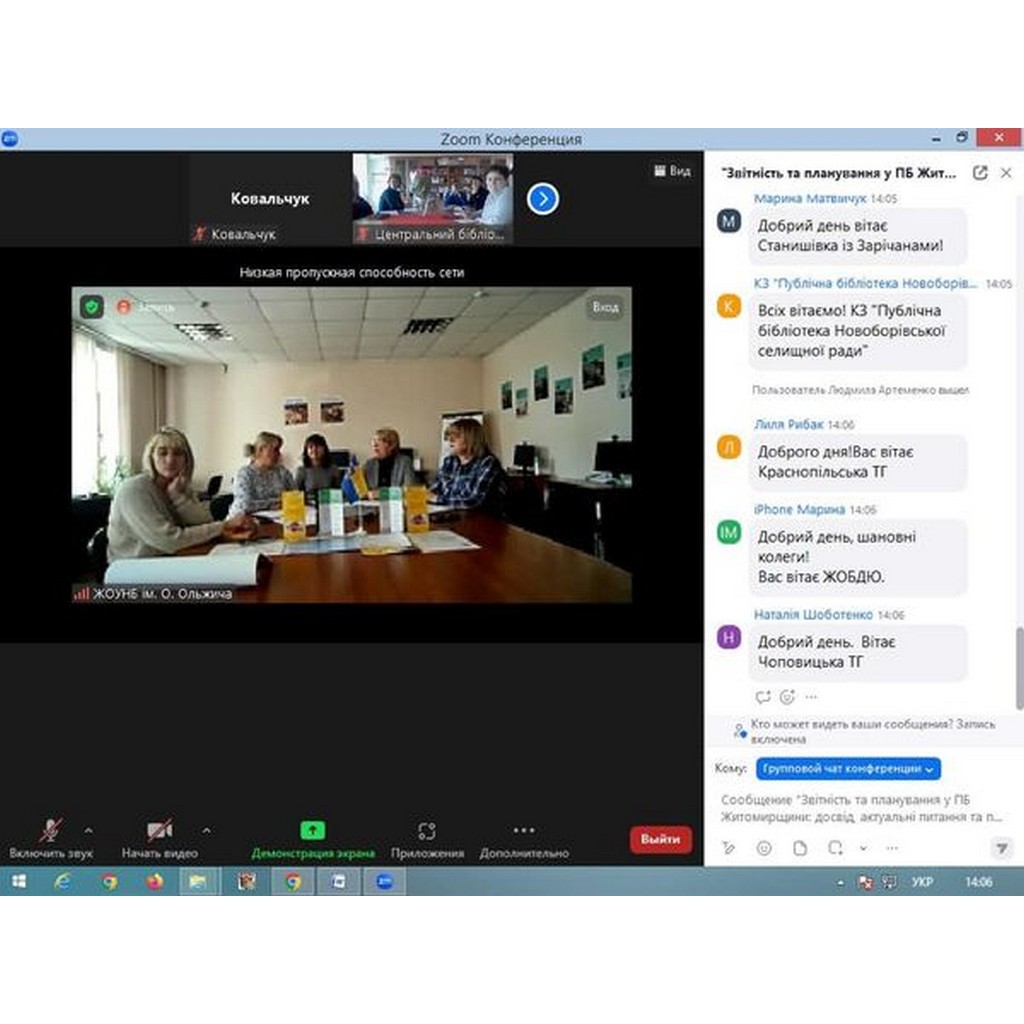 29 лютого 2024 року в секторі «Інтернет-центр» ЖОУНБ імені Олега Ольжича науково-методичним відділом було проведено zoom-конференцію за темою «Звітність та планування у ПБ Житомирщини: досвід, актуальні питання, перспективи» з циклу заходів Школи професійного навчання для бібліотекарів Житомирської області.