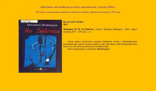 Нові книги, що надійшли до відділу краєзнавства у лютому 2018 р.