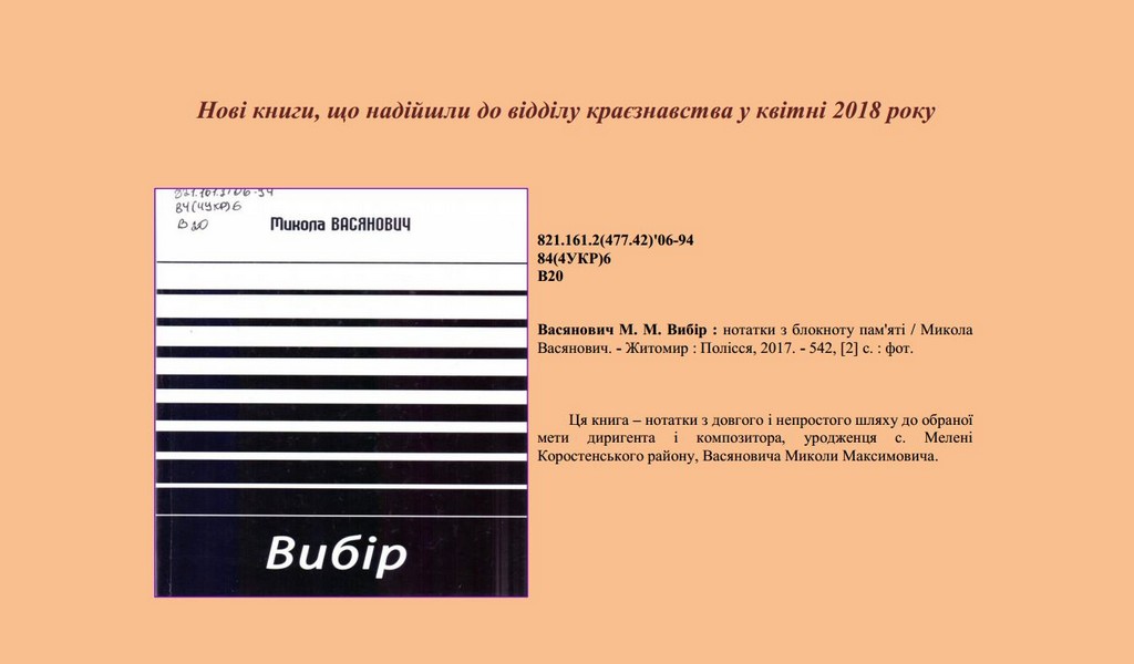 Нові книги, що надійшли до відділу краєзнавства у квітні 2018 р.