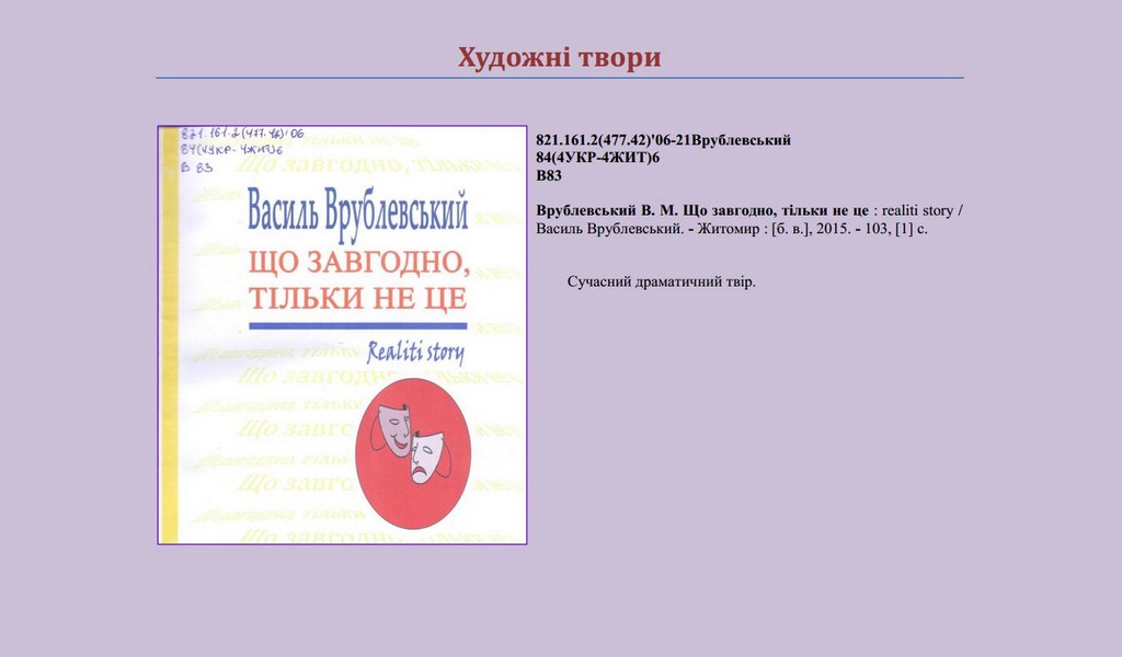 • Зведений каталог ЖОУНБ та бібліотек Житомирської області