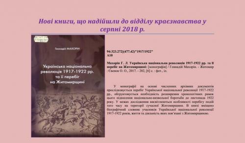 Нові книги, що надійшли до відділу краєзнавства у серпні 2018 р.