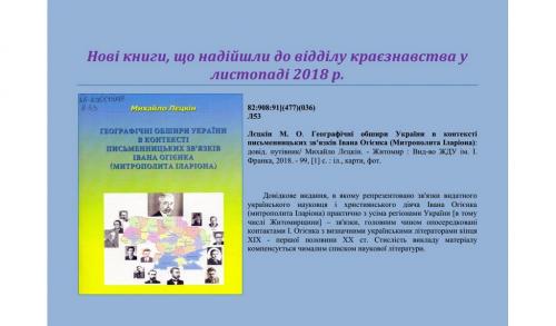 Нові книги, що надійшли до відділу краєзнавства у листопаді 2018 р.