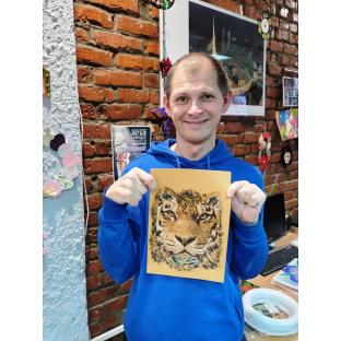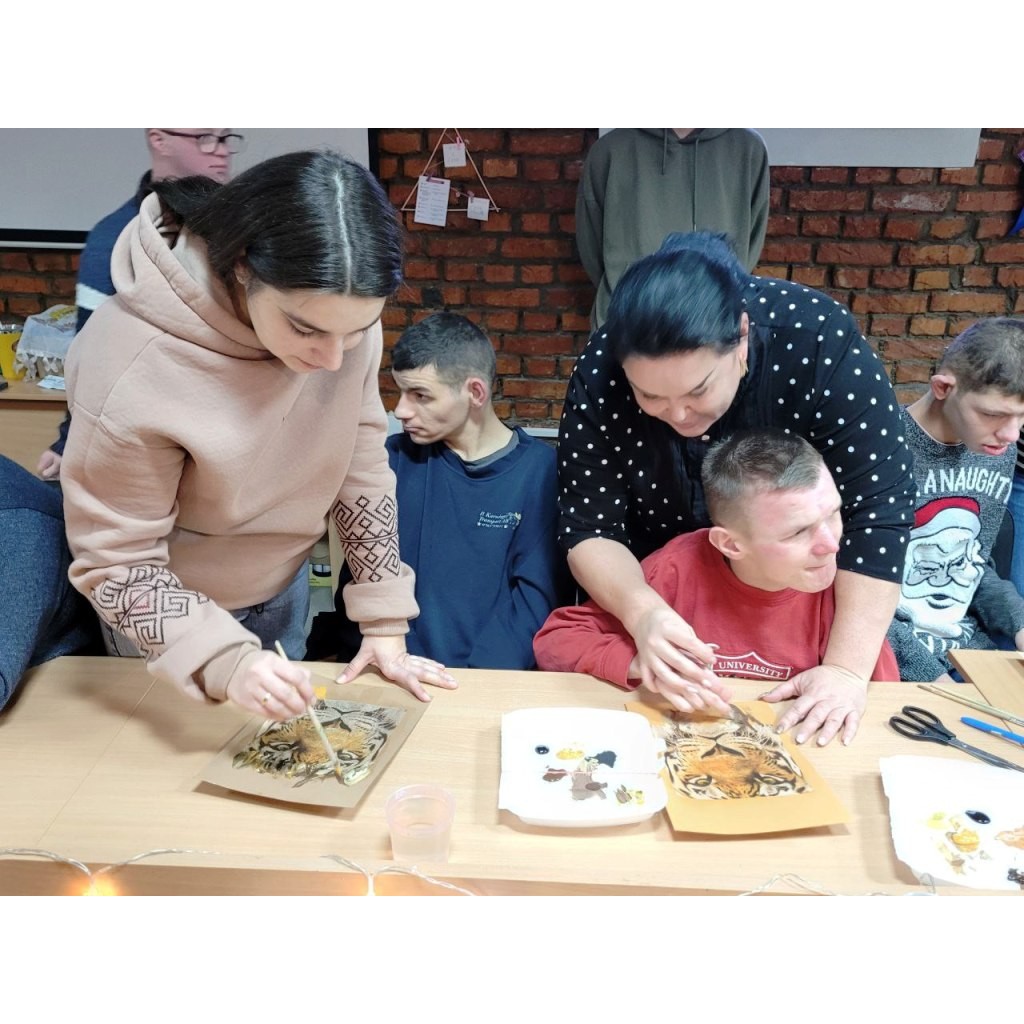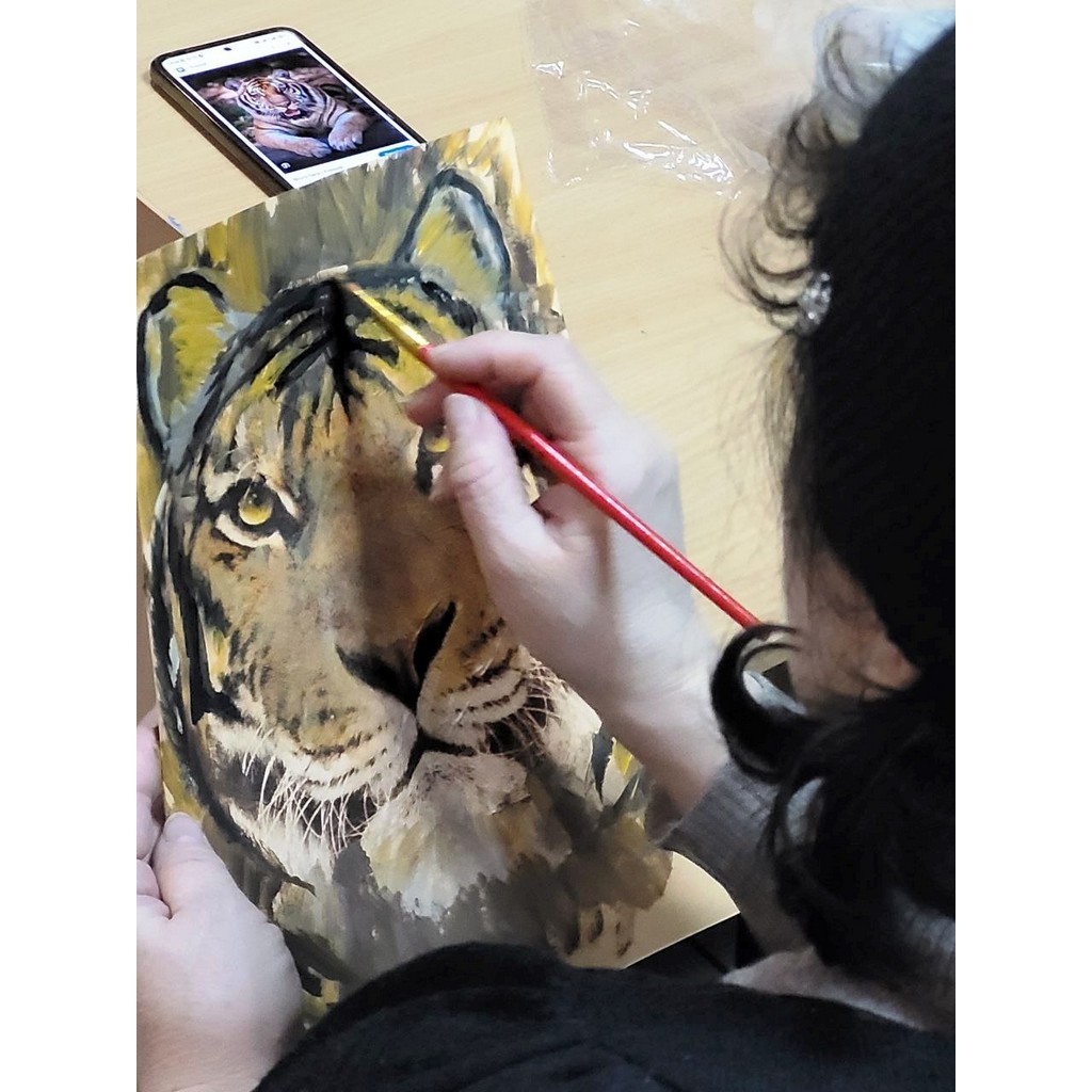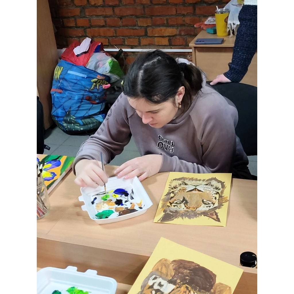 Після теоретичної частини учасникам було запропоновано практичне завдання: створити художню роботу, яка символізує силу та сміливість. Для цього обрали образ тигра — як уособлення цих якостей. Створення роботи відбувалося із застосуванням методів аплікації, декупажу та малювання.