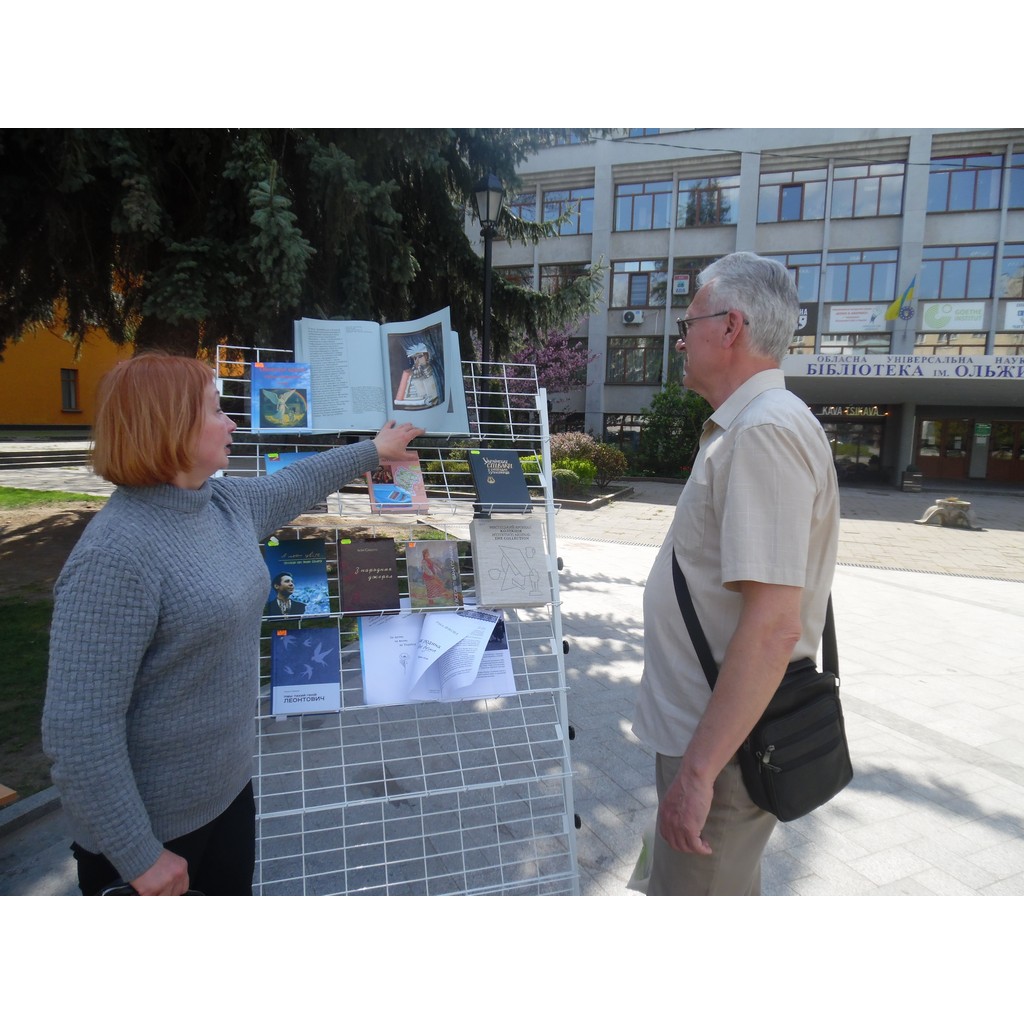 23 квітня 2025 року відбулася вулична акція до Дня відкритих дверей з нагоди заснування КЗ «ОУНБ імені О. Ольжича». Бібліотекарі  відділу мистецтв та соціокультурної діяльності, запрошували безкоштовно записатися до бібліотеки всіх, хто мав бажання стати користувачами нашої бібліотеки.