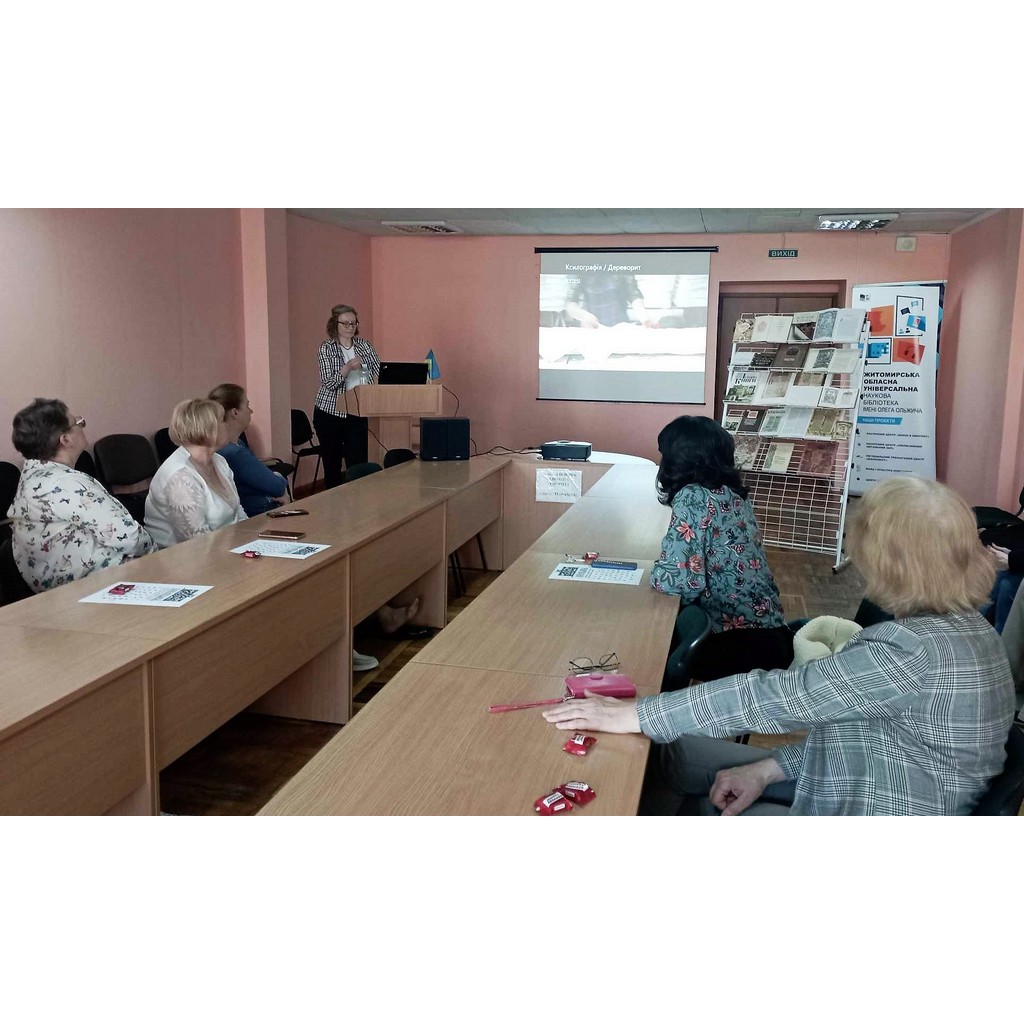 23 квітня 2025 року в конференц-залі ЖОУНБ ім. О. Ольжича головний бібліотекар відділу гуманітарних видань Рудзінська Тетяна провела історичну годину. Бібліотекарі опрацювали історико-документальні матеріали, обговорювали їх та жваво дискутували про новітні досягнення епохи Відродження. Вони також згадували видатних діячів цього періоду, зокрема внесок Йоганна Гутенберга у розвиток друкарства, що стало важливим кроком для поширення книгодрукування в Європі. Під час зустрічі працівники з’ясували, що першими точно датованими українськими стародруками були “Апостол” і “Буквар”, надруковані у 1574 році у Львові Іваном Федоровим кириличним шрифтом. Усі охочі мали змогу створити власні листівки та книжкові закладки, використовуючи техніку штампування та доступні матеріали.