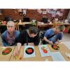 Кожен учасник обрав платівку, яка стала полотном для творчості. Ми поділилися з молодю основними елементами розпису: квіти, листя, пір’їнки. Кожен виріб став справжнім витвором мистецтва, наповненим індивідуальністю та українським духом.