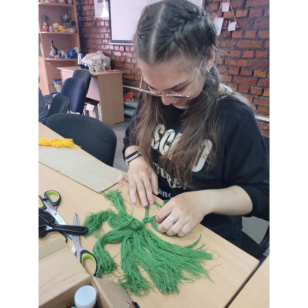 Поринувши у світ рукоділля й творчості учасники створювали миленьких восьминогів із ниток. Процес був не лише цікавим, а й корисним: учасники вчилися переплітати нитки, формуючи косички, з яких утворювались ніжки восьминога. Це допомагало розвивати моторику, увагу та терпіння, а ще — надихало на спілкування та взаємодію.