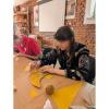 Також виготовляли картину зайця та лисиці з картону та перероблених матеріалів. Малювали лісовий пейзаж. Виготовляли підвіску для декору лева з клаптиків тканини та одноразового посуду.