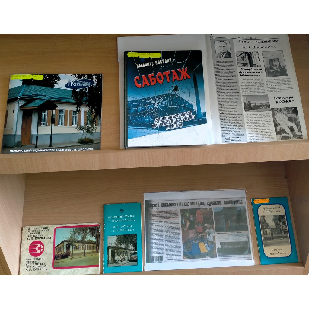 31 липня 2025 року в відділі краєзнавства ЖОУНБ ім. О. Ольжича оформлено книжкову виставку із циклу: «Культурно-освітня спадщина Житомирщини»: «Музей космонавтики на Житомирщині» (до  55 – річчя Національному музею космонавтики ім. С.П.Корольова).