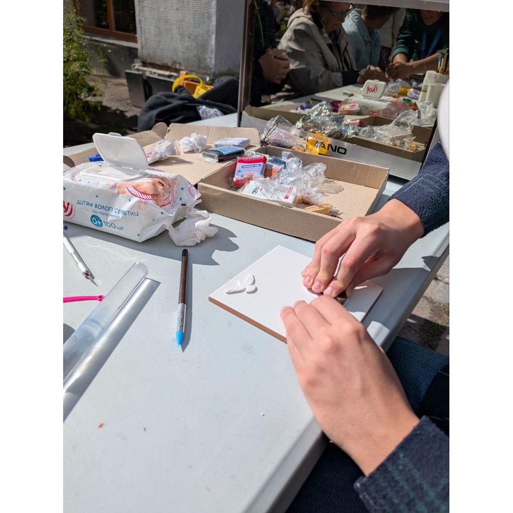 Особливим захопленням користувалися майстер-класи: ліплення з полімерної глини, де учасники створювали власні яскраві вироби; плетіння браслетів, що стало символом дружби та єдності;