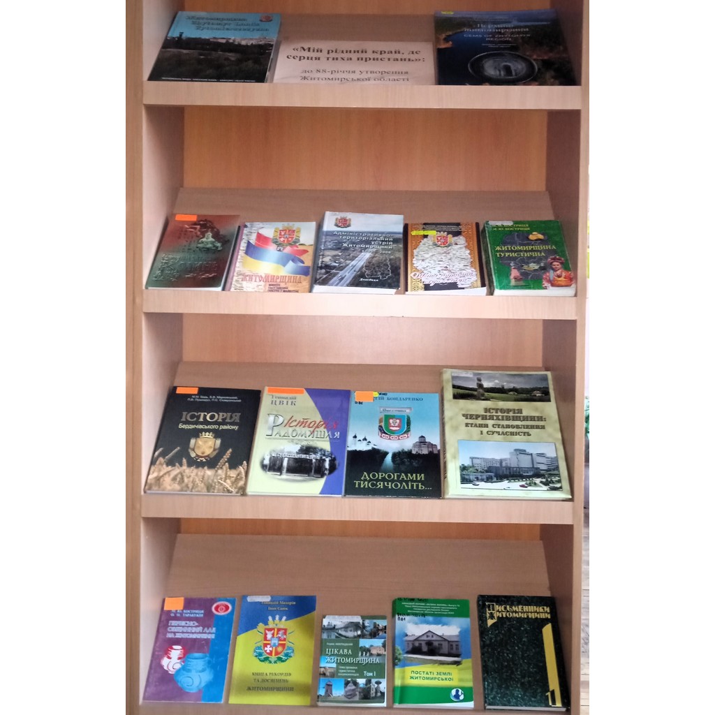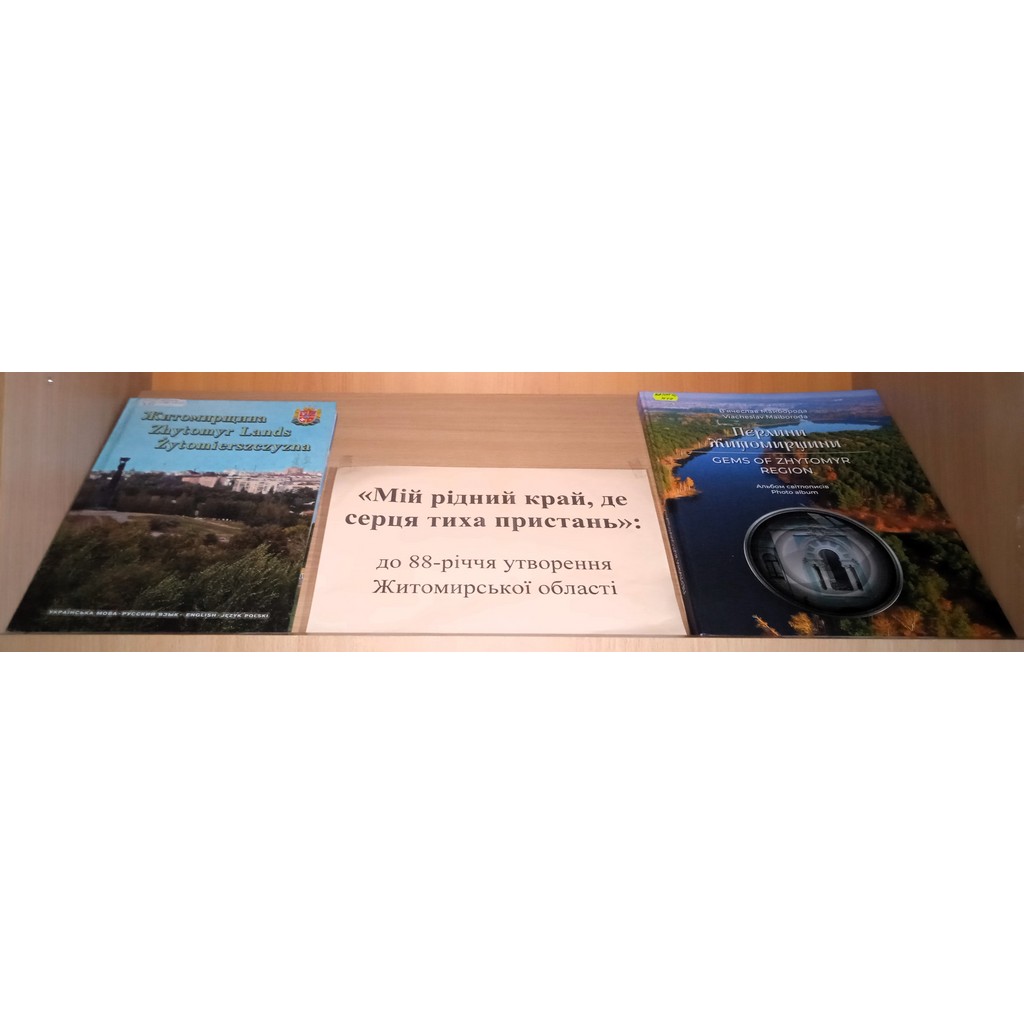 • До 88-річчя від дня заснування Житомирської області 22 вересня 2025 року у відділі краєзнавства ЖОУНБ ім. О. Ольжича представлена виставка «Мій рідний край, де серця тиха пристань».