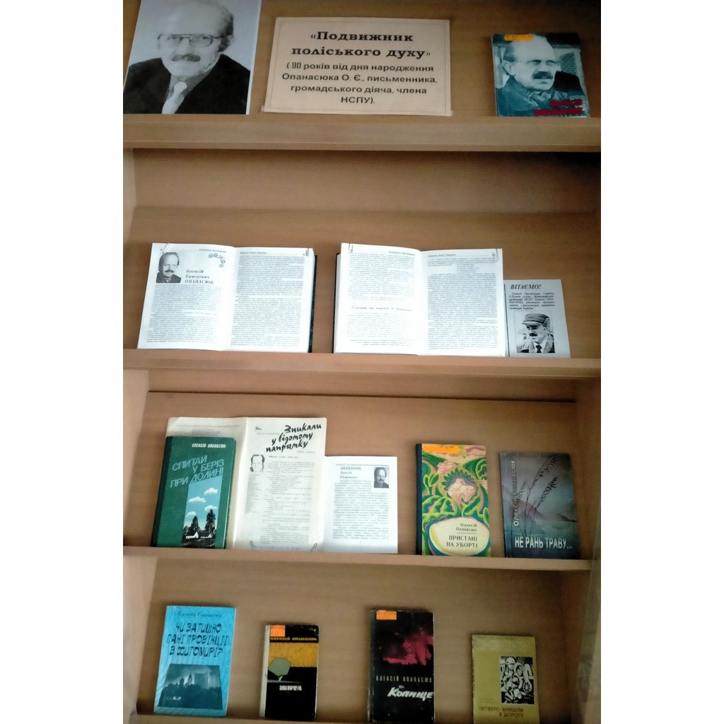 З 19 березня 2026 року в холі ЖОУНБ ім. О. Ольжича експонується книжкова виставка із циклу: «Ім’я в історії краю»: «Подвижник поліського духу» (до 90 – річчя від дня народження Опанасюка О. Є., письменника, громадського діяча, члена НСПУ).